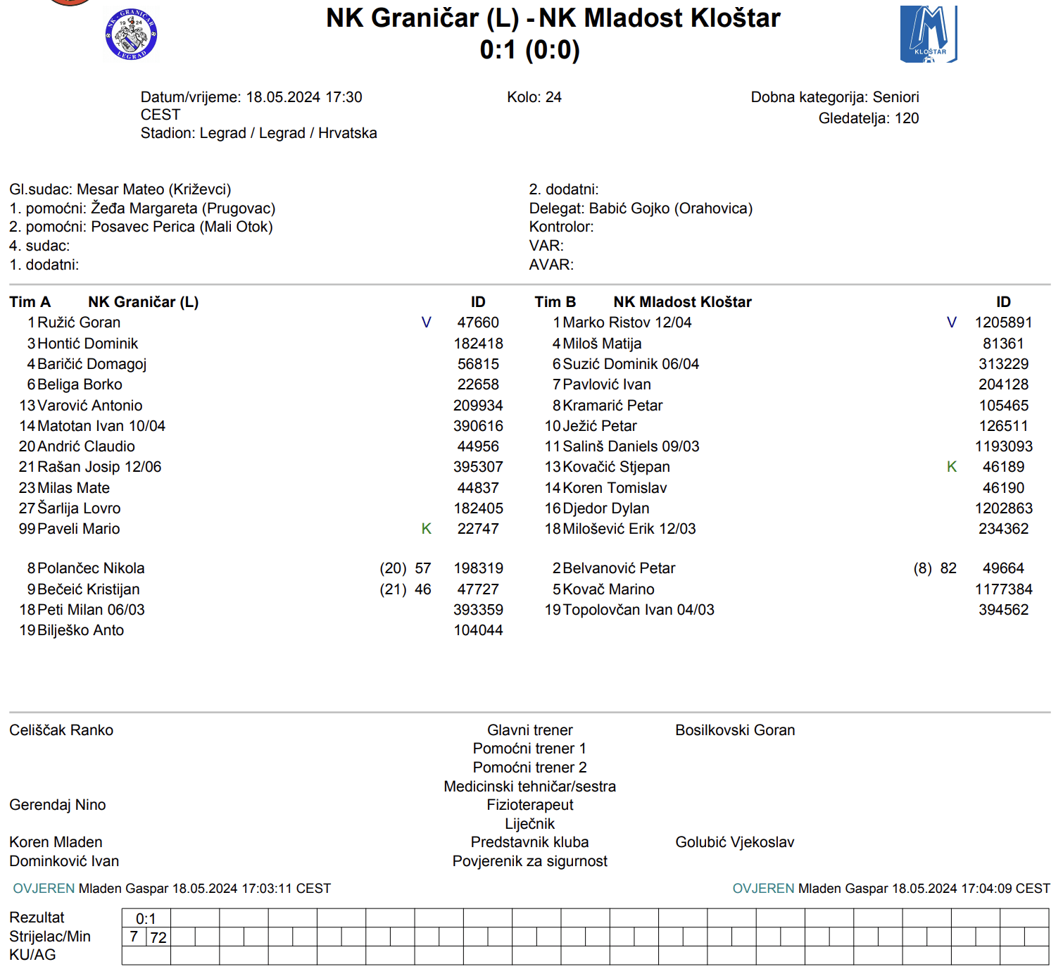 Odigrali smo potpuno ravnopravnu utakmicu. Protivnik je zabio eurogol iz kosa, udarivši prečku od koje se lopta odbila u gol. Moja momčad je opet dala sto dvadeset posto i za mene su pobjednici. – dodao je trener Graničara, Ranko Celišćak.