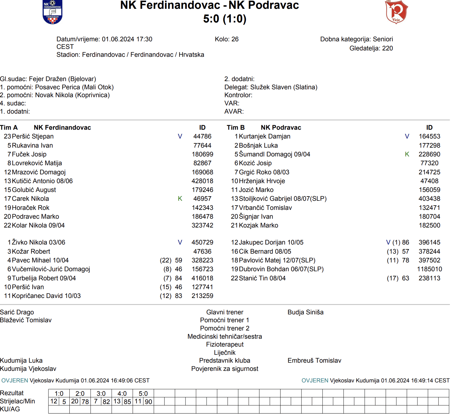 FERDINANDOVAC – PODRAVAC(V) 5:0