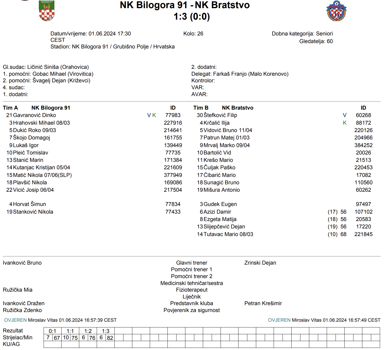 Čestitke ekipi Bratstva na pobjedi! Mi smo ostvarili svoj cilj, izborili plasman u treću ligu i finale kupa. Sada se okrećemo srijedi, gdje idemo uživati u utakmici finala protiv Bjelovara, te se radujemo zasluženom odmoru. – riječi su Željka Ostrmana, trenera Bilogore.