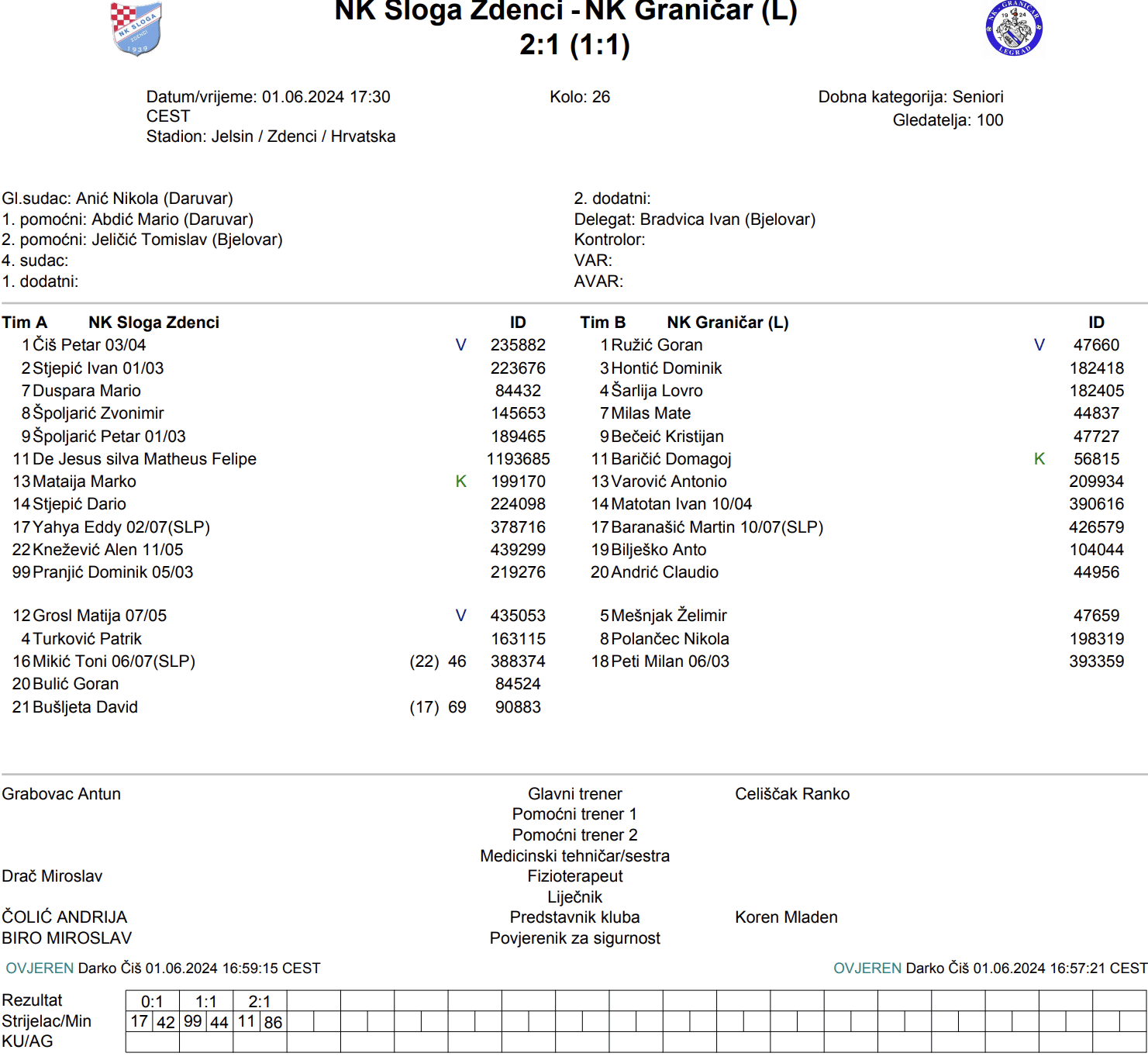 SLOGA(Z) – GRANIČAR(L) 2:1