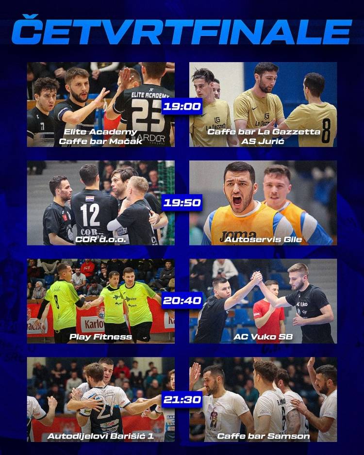 Elite Academy/Caffe bar Mačak, COR d.o.o., Caffe bar La Gazzetta/AS Jurić, Caffe bar Samson i Autoservis Gile prošli u četvrtfinale 32. BMNT "Požega 2023"