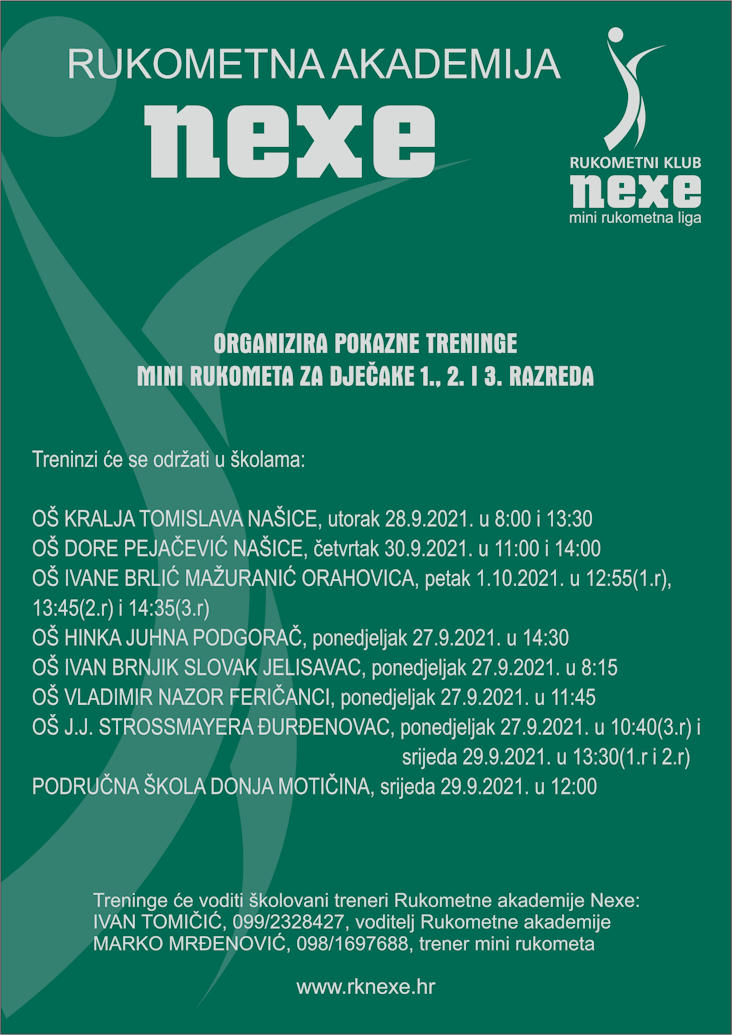 Rukometna akademija NEXE organizira pokazne treninge mini rukometa za dječake 1., 2. i 3. razreda