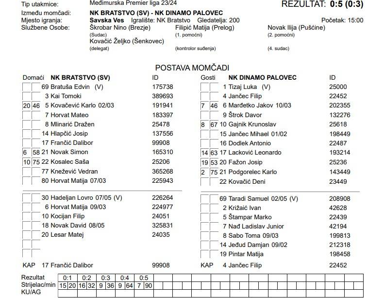 NK BRATSTVO (SV) – NK DINAMO PALOVEC 0:5