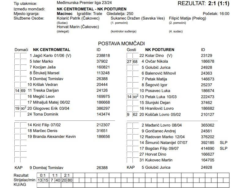 U derbiju današnjeg dana, Centrometal je u napetoj utakmici bio bolji od Podturna i uzeo velika tri boda. Ipak, gosti su poveli u 15. minuti susreta preko Luke Petka. Domaćin se nije dao pa je uzvratio pogotkom u 40. minuti preko Jaše Kocijana. Erik Glogovec je u 80. minuti zabio za vodstvo domaćina i na kraju pobjedu. Valja napomenuti kako je u istoj minuti pokazan crveni karton.