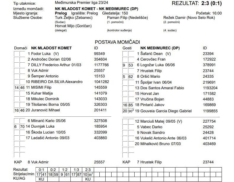 NK MLADOST KOMET – NK MEĐIMUREC (DP) 2:3