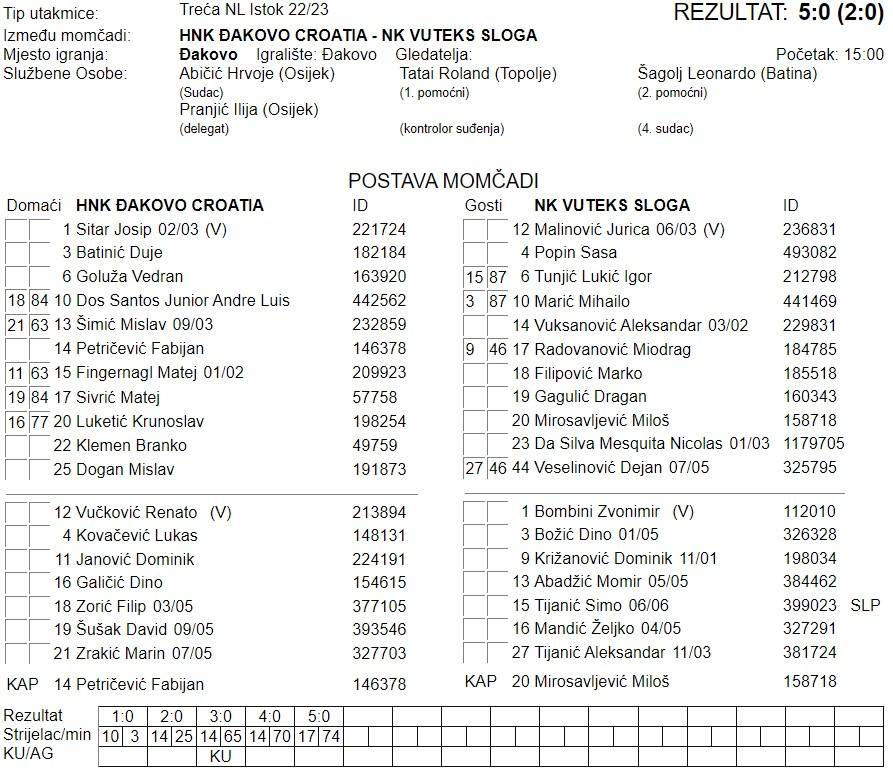 ĐAKOVO CROATIA – VUTEKS SLOGA 5:0