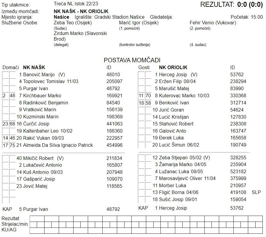 – Vrlo izjednačena utakmica po teškom terenu u Našicama. Obje ekipe su držale visoki ritam od početka do kraja utakmice i na kraju je realan neriješen ishod. Na samo kraju utakmice smo propustili stopostotnu priliku, ali smo vrlo zadovoljni izvedbom i bodom sa teškog gostovanja – poručio je Miroslav Stefanović, trener Oriolika.