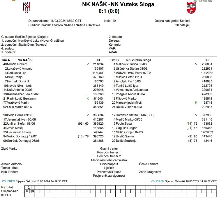 – Danas nismo bili pravi što je gost znalački iskoristio. Ne mogu reći da moji momci nisu željeli, ali jednostavno danas nije išlo. Kako god, nema plakanja već treba stisnuti zube, dobro raditi i pokušati doći do bodova u Kneževim Vinogradima – riječi su Marka Žigića, trenera Naška.