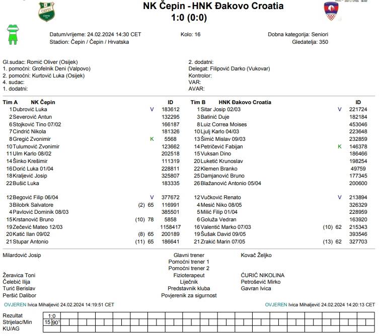 ČEPIN – ĐAKOVO CROATIA 1:0