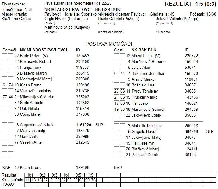Bučani su rutinski odradili posao u Pavlovcima i došli do novih bodova kojima je drugo mjesto zabetonirano, no onaj minus iz Zagrađa će teško nadoknaditi. Dva pogotka djelo su Josipa Jakovljevića, po jedan su zabili Tomislav Tvrdy, Marko Hruškar i Marko Aračić, dok je u završnici poraz Mladost ublažio Matej Ćosić.