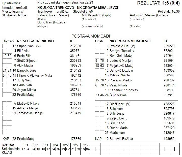 Susjedski derbi nije donio ništa neočekivano, Parmakovićeva je momčad bez problema došla do novog slavlja. Sve je bilo gotovo za samo 12 minuta, u tom vremenskom periodu strijelci za goste bili su Nikola Vasić, Matias Šulc i Božidar Banović, a nakon toga su Mihaljevčani povukli ručnu i do kraja zabili još “samo” tri, u prvom dijelu pogodio je još jednom Šulc, dok su u nastavku za Croatiju zabijali Krunoslav Kahanek i Mario Rudar, dok je počasni gol Sloge potpisao Danijel Tomašević. U 67. minuti isključen je Nikola Jogun pa je domaćin do kraja bio i sa igračem manje, no u tom je periodu odigrao – 1:1.