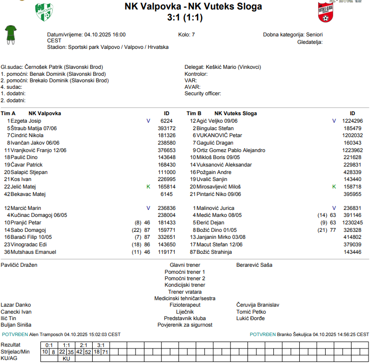Počelo je loše po domaćina u Valpovu, već u osmoj minuti Boris Mikloš donio je prednost Vuteksu, bio je to dodatni udarac ionako poljuljanom samopouzdanju Valpovčana, no kako smo već puno puta pisali – na muci se poznaju junaci. U 35. kapetan Matej Jelić pogađa s bijele točke za poravnanje. Otvaranje nastavka ide po željama Dražena Pavličića, još jedan od onih koji moraju povući kad je teško zabija, Matej Bekavac je preselio prednost na stranu Valpovke u sedmoj minuti drugog dijela. Barem jednu mirniju utakmicu navijačima Valpovke je osigurao Dino Paulić golom za 3:1 dvadesetak minuta prije kraja. Preskočila je Valpovka Vuteks na ljestvici, sada se ipak lakše diše, ali daleko od toga da je Valpovka tamo gdje bi je očekivali s obzirom na kadar.