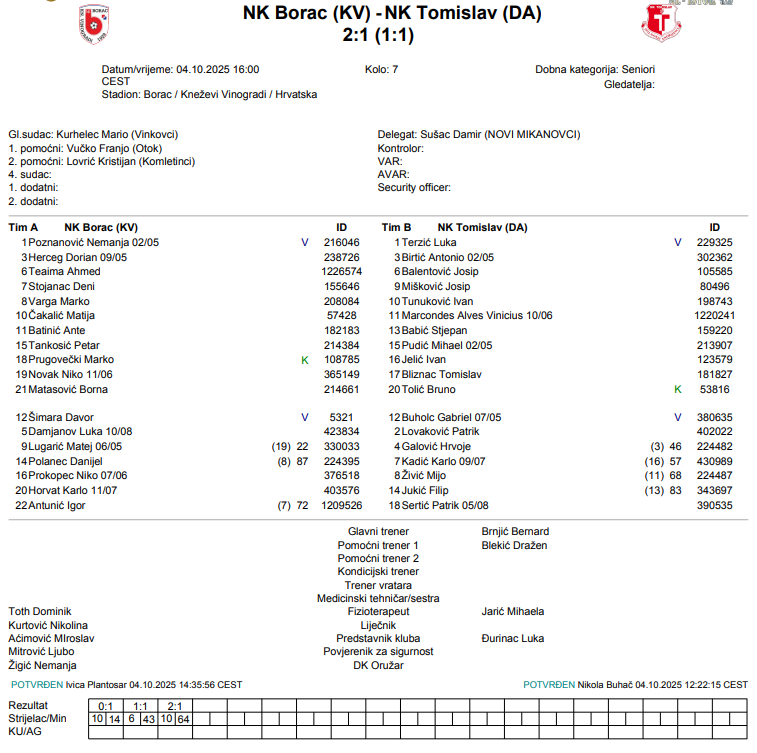 Fantastično je u svoju trenersku misiju na klupi Borca krenuo Nemanja Žigić, tri utakmice, sedam osvojenih bodova! Domaće slavlje protiv Andrijevaca djeluje poput bronhija, sada se u Baranji puno lakše diše! S druge strane naravno dijametralno suprotno raspoloženje, Tomislav je imao šansu priključiti se samom vrhu, preskočiti Slavoniju i smanjiti zaostatak za Slavijom i Marsonijom, no na kraju ništa od toga, sada i oni definitivno idu u kategoriju simpatičnih gostiju, aktivnih turista koji “obilaze” Slavoniju i Baranju i svojim domaćinima donose poklone u vidu bodova. A krenulo je sjajno po Andrijevčane, u 14. minuti Ivan Tunuković pogađa za njihovo vodstvo, uspjeli su ga i stabilizirati, činilo se da će na odmor s prednosti, no Ahmed Teaima u 43. ipak vraća Borac u egal. U nastavku Matija Čakalić u 64. minuti zabija za preokret i još jednom potvrđuje onu tezu o neprolaznosti igračke klase i prolaznosti vremena.