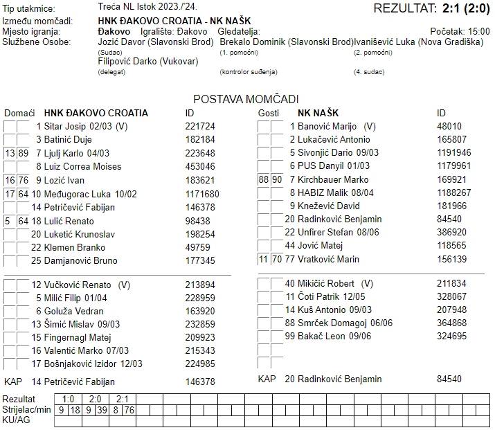 – Pobjeda i osvojeni novi bodovi su razlog za veselje, no isto tako i motivacija za još više truda i bolje igre u narednim tjednima. Zasluženo smo vodili u prvom poluvremenu i mogli smo zaključiti utakmicu s još kojim golom. Naši protivnici iz Naška su se odlično borili u drugom poluvremenu s organiziranom igrom te su smanjili našu prednost, dovodeći utakmicu u neizvjesnost. Velike čestitke idu, naravno, našim igračima na još jednoj odličnoj predstavi, a također i protivnicima na prikazanoj igri – prokomentirao je Ivica Gavran, trener Đakova.