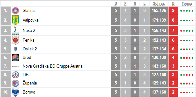 Rukometaši u 2.HRL Istok su završili polovinu jesenskog dijela, a razlike na tablici su izrazito male. Posebno se iskazala Slatina, vodeća ekipa ljestvice, ali i ekipa koja ovaj vikend neće na teren jer im je utakmica s Feniksom odgođena. Priliku za preuzimanje prvog mjesta će zato htjeti iskoristiti Valpovka koja ide u goste Županji. Domaćini su pretposljednja ekipa prvenstvene ljestvice, imaju samo jednu pobjedu ove sezone, a bez obzira na to htjeti će napraviti probleme Valpovki u borbi za vodeće mjesto na ljestvici. Utakmica je na rasporedu danas, s početkom u 19 sati.