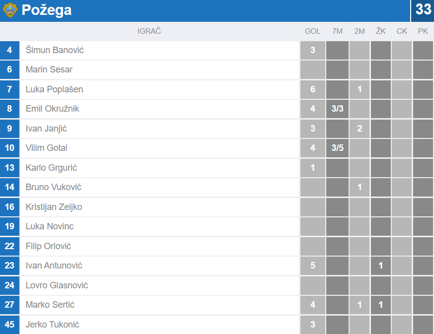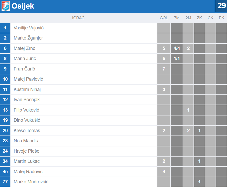 Najbolji strijelac u osječkim redovima bio je Fran Čurić sa sedam pogodaka, a