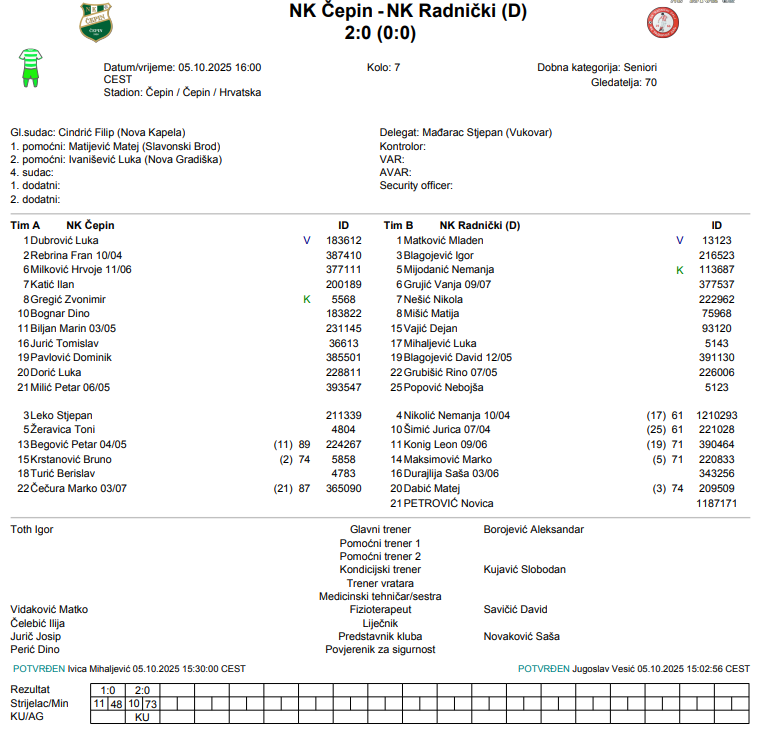 Iako se pišu tri boda, ova pobjeda za Čepin vrijedi puno više od toga jer zapeli su Zeleni u seriju poraza, bili su bez “pola” momčadi  za ovaj ogled protiv odličnog Radničkog, a s ovim slavljem Toth je osim bodova dobio i nekoliko rješenja u koja se može pouzdati i u nastavku sezone. Nakon što su u prvom dijelu mreže mirovale,  u trećoj minuti nastavka Čepinu prednost donosi Marin Biljan. Bio je to vjerojatno i ključni trenutak susreta, a pobjedu Čepina je s bijele točke u 73. minuti potvrdio najbolji pojedinac utakmice Dino Bognar.