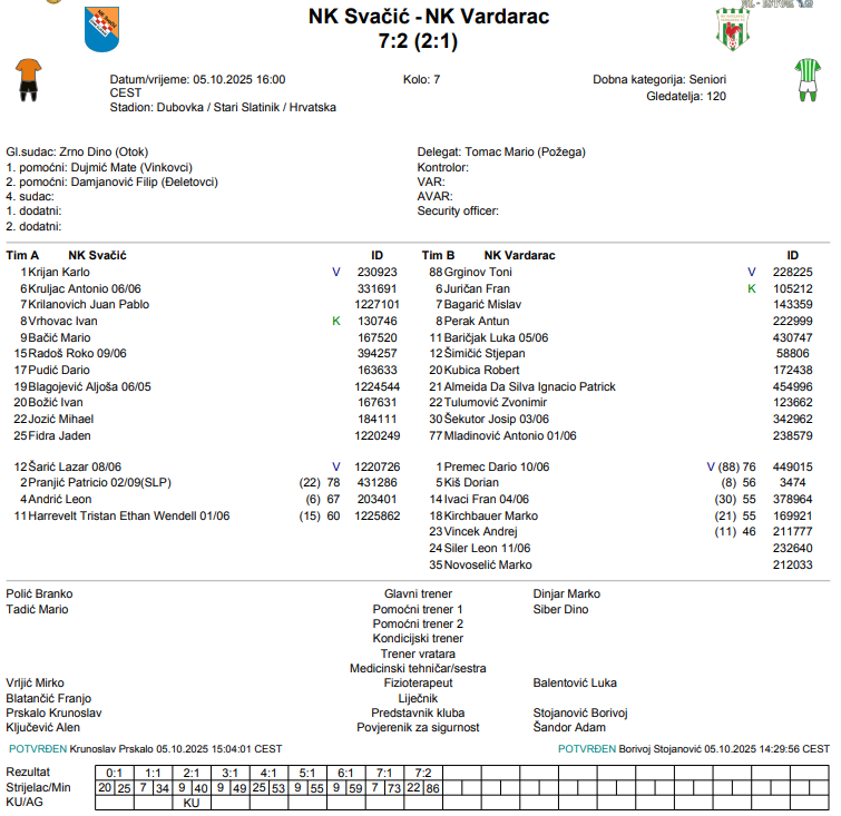 Nogometaši Svačića su se svojski potrudili olakšati nam najavu sljedećeg kola i njihovog gostovanja u Pleternici, bit će to poslastica, dvoboj dvije najefikasnije momčadi lige! Da su Bačić i društvo bili još malo aktivniji mogli su i Vardarac pogurati u “naj” kategoriju, samo onu negativnu, s najviše primljenih. Ovako je društvo iz Vardarca uoči baranjskog derbija ipak tek druga najlošija obrana lige! Pričati nešto o utakmici je besmisleno, rezultat sve govori sam za sebe. A počelo je dobro po goste, Robert Kubica im je donio prednost, no to je samo naljutilo Naranče. Do odmora su Juan Pablo Krilanovich i Mario Bačić kreirali preokret, a onda u nastavku prava rapsodija Tadić-Polićeve družine. Uvodnih 15 minuta drugog poluvremena je vjerojatno najbolje što je netko odigrao ove sezone, ili najgore, ovisno iz kojeg kuta gledate. Na poluvremenu 2:1, u 59. minuti – 6:1! U tom periodu Bačić je zabio još tri, Jaden Fidra jedan. Do kraja Krilanovich još jedan, ukupno sedmi za domaćina, a na kraju za goste zabija i Zvonimir Tulumović, nećemo se razbacivati s frazama o uljepšavanju poraza, jer ovakav potop baš ništa ne može uljepšati. Eventualno tek pobjeda nad Borcem, ali za to će morati Zeleni neusporedivo bolje od ovoga.