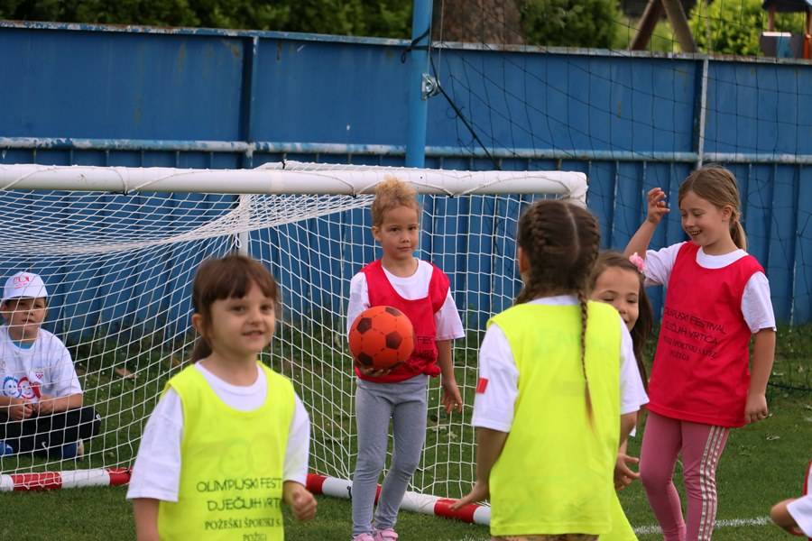 Olimpijsku zastavu nosila su djeca iz Dječjeg vrtića “Bambi” Kaptol čija predstavnica Sara je bez greške izrecitirala i olimpijsku himnu. U atletici, malom nogometu i vrtku (rukomet u vrtiću) natjecalo se danas ukupno 492 djece. Za jubilarni 20. Olimpijski festival naše županije bilo je prijavljeno ukupno 506 natjecatelja (243 djevojčice i 263. dječaka) jer se i Dječji vrtić Čaglin na vrijeme prijavio kod koordinatora natjecanja Jurice Bešlića sa ukupno 14 djece ali su morali odustati od natjecanja zbog bolesti većine svoje djece. Organizator je dostavio majice, kape i diplome i djeci iz tog vrtića koja se nažalost ove godine nisu natjecala, a taj novi vrtić je prošle godine i prvi put sudjelovao na Festivalu koji je 05. 05. 2023. godine okupio ukupno 453 djece.