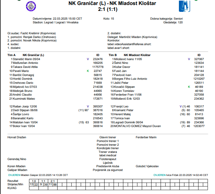 GRANIČAR 2:1 MLADOST KLOŠTAR
