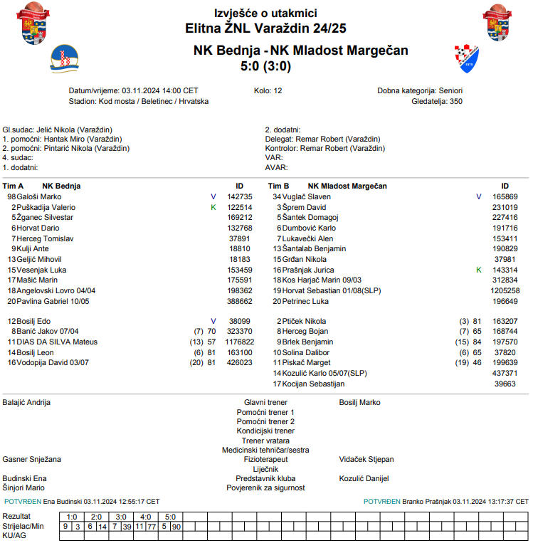 Bednja je u Beletincu ugostila Mladost iz Margečana i dobro ga počastila s pet pogodaka u mreži. Nemilosrdni su bili nogometaši Bednje od prvog sučevog zvižduka, jer su prvi pogodak postigli već u 3. minuti utakmice kada je Ante Kulji zatresao mrežu gostiju. Dario Horvat upisao se u strijelce u 14. minuti, a do kraja prvog dijela svoj doprinos dao je i Tomislav Herceg. Drugo poluvrijeme je Bednje počela napadački, isto onako kako ga je završila. To je urodilo s još dva pogotka iz leđa gostujućeg vratara, a njih su postigli Mateus Da Silva i Silvestar Žganec.