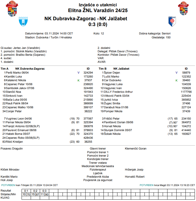 Odigrali smo dobru utakmicu u kojoj smo imali veći dio posjed lopte i kontrolu. Dubravka je dobro igrala fazu  obrane u prvom poluvremenu te ih je bilo teško probiti. U drugom poluvremenu smo bili puno konkretniji, stvorili šanse, ali zabijamo tek u trećoj trećini utakmice. Kasnije kada se domaćin otvorio bilo je puno lakše dolaziti u situacije i stvarat nove šanse, pa dajemo još dva gola u završnici i zaslužno osvajamo bodove. – prokomentirao je jučerašnju pobjedu Goran Klemenčić, trener Jalžabeta.