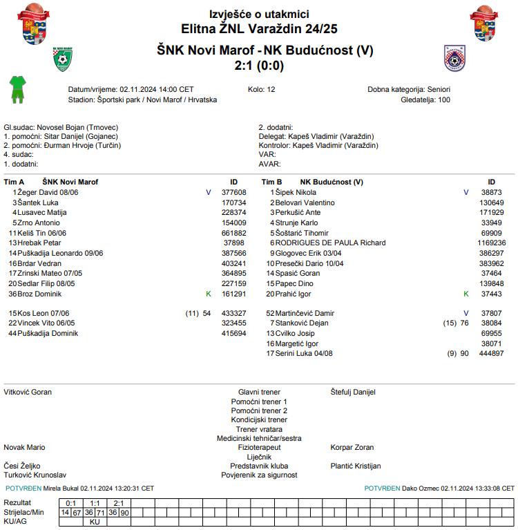 ŠNK Novi Marof – NK Budućnost (V) 2:1