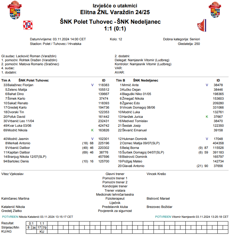 Vjerojatno najatraktivniji susret kola igran je ovog vikenda u Tuhovcu. Tamo je domaći Polet ugostio Nedeljanec i prijateljski s njim podijelio bodove. U utakmici punoj tempa i trke, obje momčadi prikazale su zavidan nivo nogometa, pa se podjela bodova čini najrealnijim ishodom. Falilo je malo sreće za domaćine da obrane sve bodove i sva tri sačuvaju u Tuhovcu, ali ni Nedeljanec nije bio bezopasan. Naprotiv, prvi su gosti poveli pogotkom Ede Žganeca u 34. minuti utakmice. Terenska inicijativa pripala je domaćinu u drugom dijelu, ali su do pogotka došli tek u 80. minuti kada je Karlo Gredelj bio precizan s bijele točke.