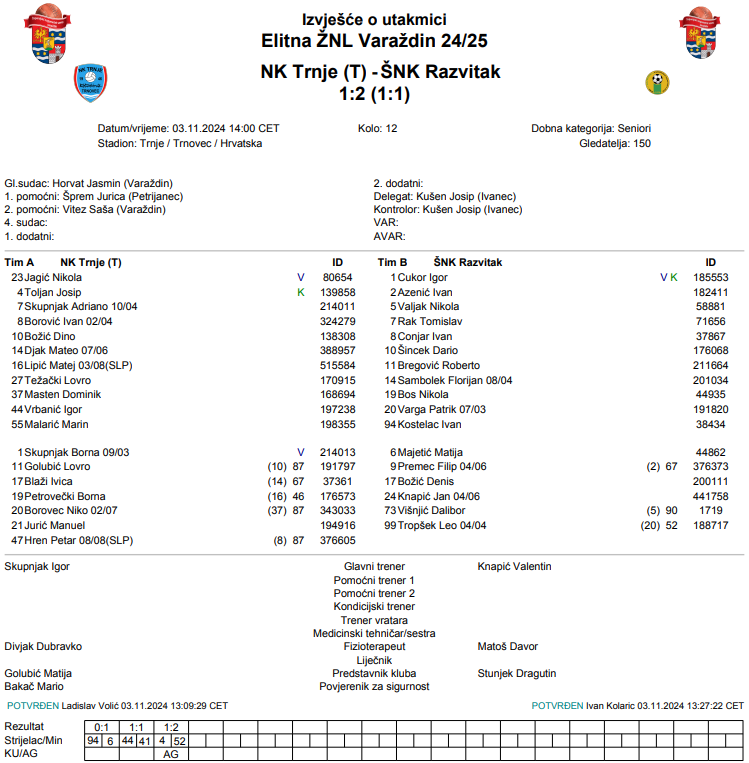 NK Trnje (T) – ŠNK Razvitak 1:2