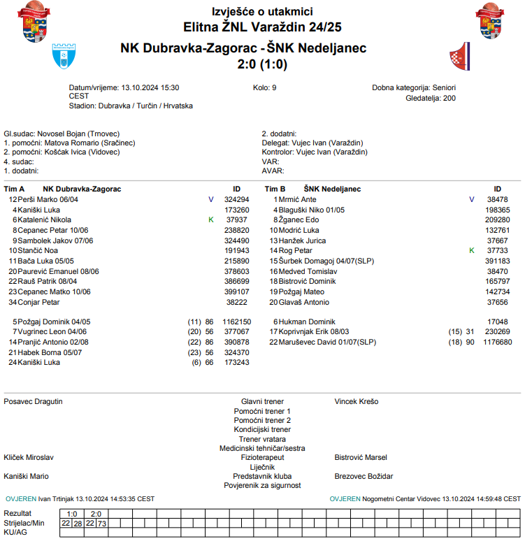 NK Dubravka-Zagorac – ŠNK Nedeljanec 2:0