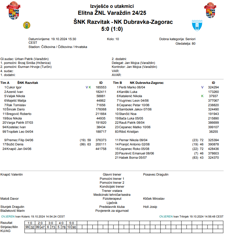 ŠNK Razvitak – NK Dubravka-Zagorac 5:0