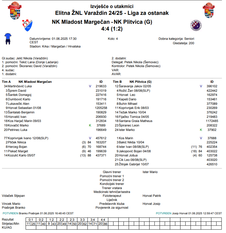Dvije utakmice 4. kola lige za ostanak odigrane su u nedjelju u Elitnoj ŽNL Varaždin. Mladost Margečan ugostila je Plitvicu dok je Dubravka-Zagorac gostovala u Tuhovcu.