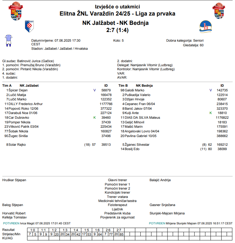 Iako su već prvaci, Bednja pokazuje kako se igra do kraja. Razmontirali su Jalžabet u gostima s čak 7 pogodaka. Do hattricka stigli su Kulji i Pavlina, dok je jedan pogodak dodao Mašić. Strijelac za Jalžabet bio je Lučić u dva navrata.
