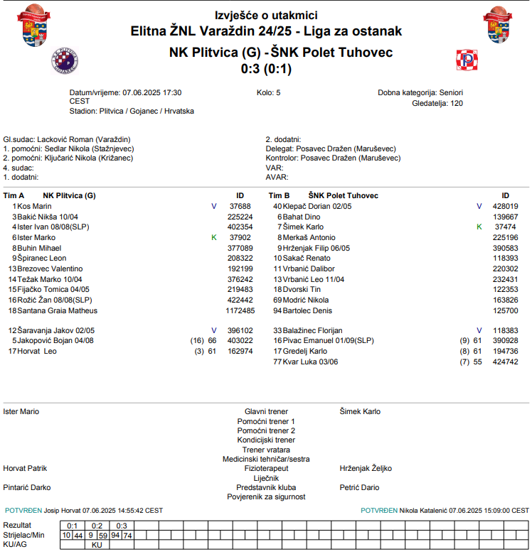 NK Plitvica (G) – ŠNK Polet (T) 0:3