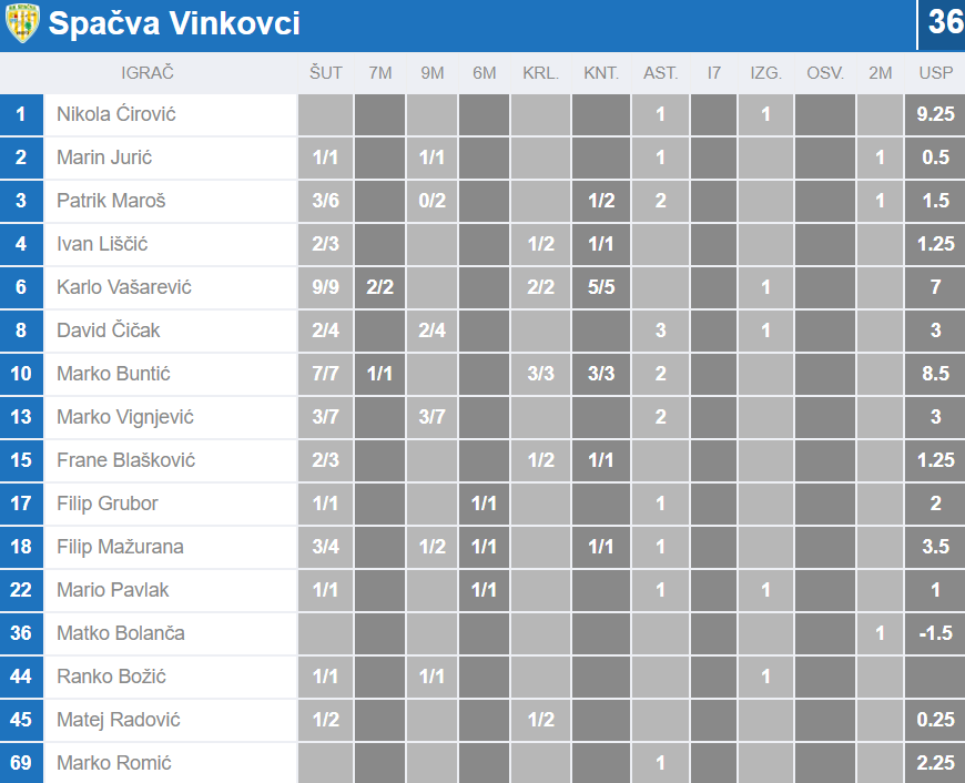 SPAČVA VINKOVCI – RKHM DUBROVNIK 36:18