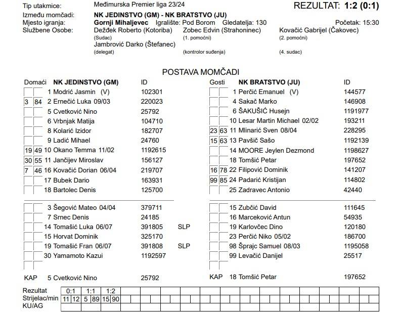 Fantastično Bratstvo nastavlja svoj niz neporaženosti. Četvrta utakmica bez poraza i treća pobjeda stigli su nakon tri boda protiv Jedinstva. Sven Mlinarić zabio je za vodstvo gosta u 12. minuti susreta. Izjednačio je Nino Cvetković u 89., no samo minutu kasnije veliku pobjedu gostima donio je David Zubčić.