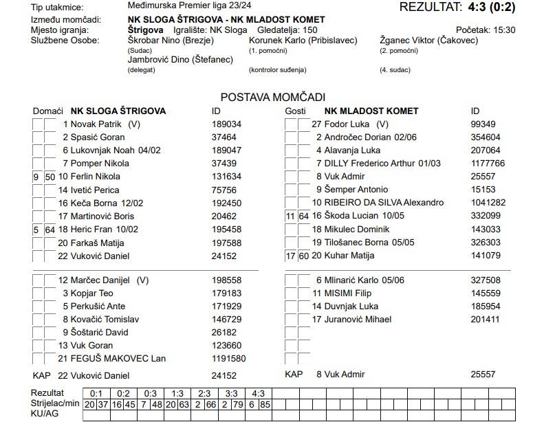 NK SLOGA ŠTRIGOVA – NK MLADOST KOMET 4:3