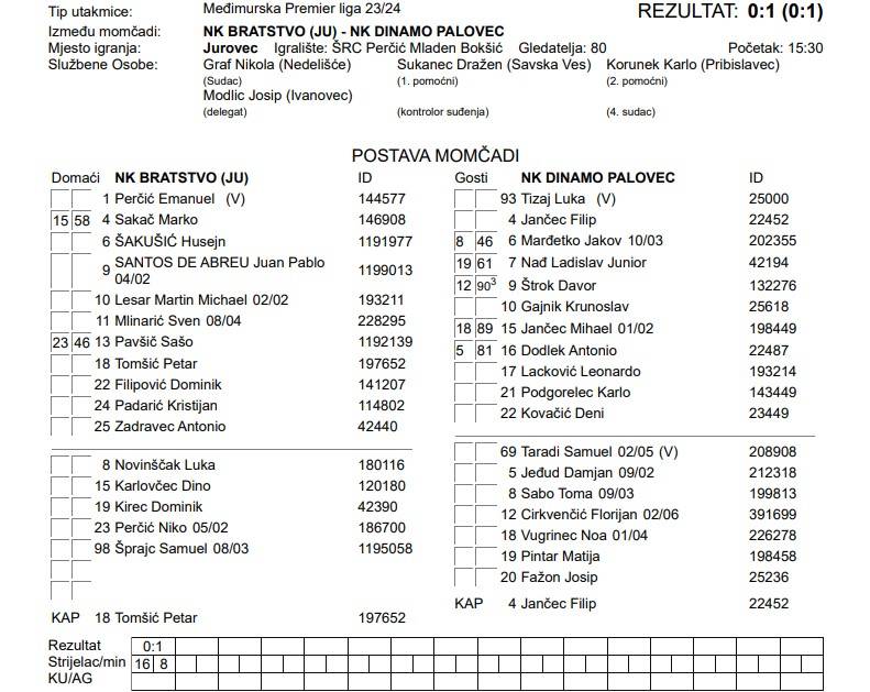 NK BRATSTVO (Ju) – NK DINAMO PALOVEC 0:1