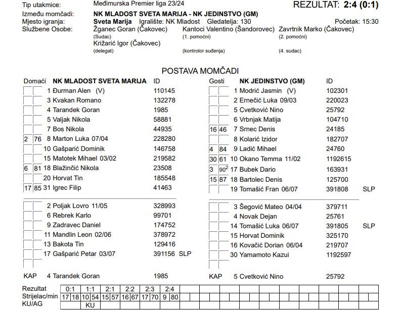 NK MLADOST SVETA MARIJA – NK JEDINSTVO (GM) 2:4