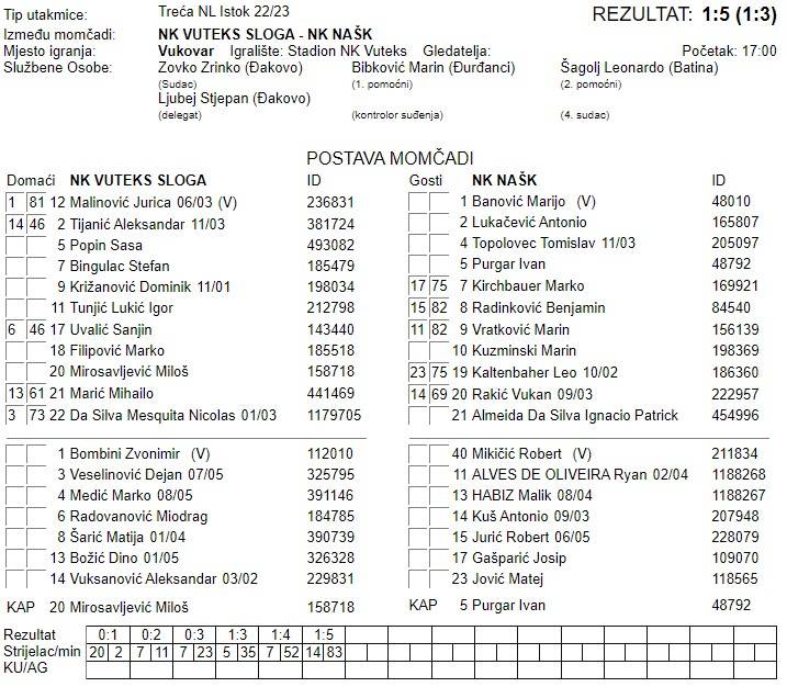 Našk je razmontirao Vuteks, iz Rupe se malo tko vraća s bodovima, a da ovako potopi Vuteks se stvarno rijetko događa. Žigićeve trupe su odradile gotovo pa savršeno poluvrijeme, kvari ga tek taj primljeni gol koji je na kraju – nebitan. Druga minuta, Našk vodi golom Vukana Rakića, u 11. je već 0:2, strijelac Marko Kirchbauer koji je u 23. najavio potop Vuteksa. Dodatne muke domaćinu zadao je Marijo Banović koji je u 33. minuti zaustavio kazneni udarac, no ipak odmah potom kapitulira i Saša Popin smanjuje zaostata Vukovaraca. Ponovno početak igre donosi Našku veselje, u 52. Marko Kirchbauer zabija i treći put na utakmici i gasi svaku nadu kod domaćih, a njihov pravi potop zaključio je Antonio Kuš golom u 83. minuti.