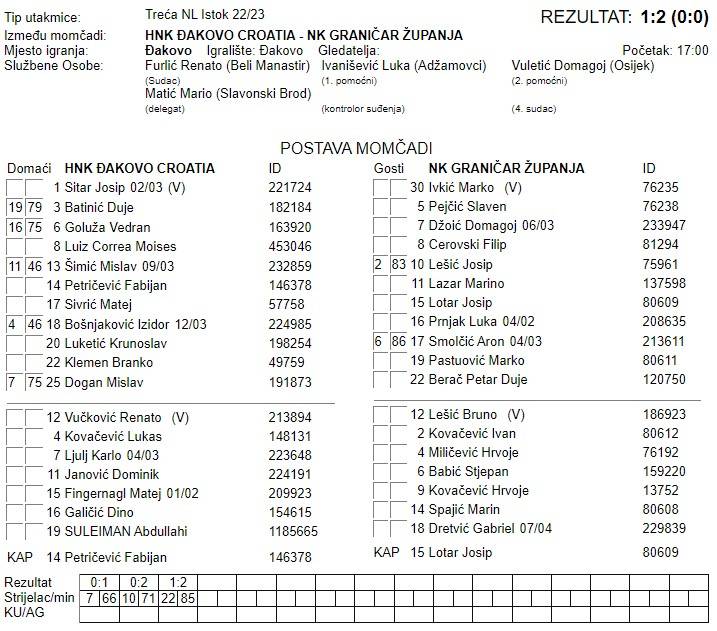 ĐAKOVO CROATIA – GRANIČAR 1:2