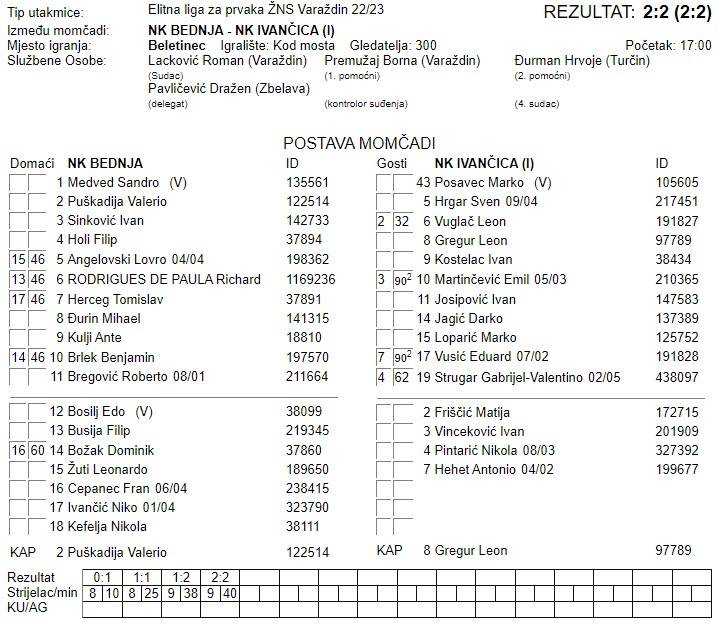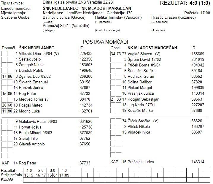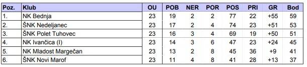 Za razliku od dvoboja u Beletincu u Nedeljancu nije bilo previše uzbuđenja što se tiče konačnog pobjednika, domaćin je brzim golom Jurice Hanđeka načeo goste iz Margečana, pa još bržim Tomislava Medveda na početku nastavka utabao put ka pobjedi. U samoj završnici još dva gola, jedan Medveda i jedan Filipa Štefulja, za vrlo uvjerljivu pobjedu Nedeljanca. Uz pomoć Ivančice nada je ponovno budna, Nedeljanec je sada šest bodova iza Bednje.