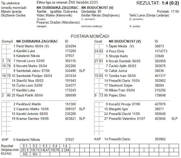 DUBRAVKA ZAGORAC – BUDUĆNOST 1:4