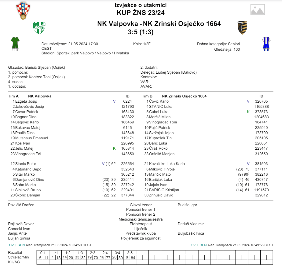 Nakon dužeg vremenskog razdoblja Valpovka je mogla jednu službenu utakmicu dočekati bez rezultatskog pritiska nakon što su prošli vikend pobjedom protiv Svačića i matematički osigurali opstanak u Trećoj NL istok. To se osjetilo i u njihovoj igri na kišom natopljenom terenu u Valpovu gdje su pokazali zube kvalitetnijem protivniku. Zrinski je na teren izašao u očekivano prošaranom sastavu. Zvijezde poput Dogana, Pekarića i Unušića su odmarali i punili baterije za fotofiniš SuperSport Prve NL, ali je trener Budiša na teren ipak poslao respektabilnu momčad i tako pokazao da Zrinski nije zanemario ni trofej županijskoga kupa.