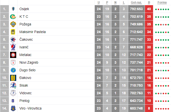 U sklopu 24. kola Osječani su ostvarili laku pobjedu protiv Metalca u gostima, bilo je 28:38. Prvi dio protekao je u potpunom egalu, samo jednom su domaćini imali vodstvo od 2 gola razlike, dok je ostatak poluvremena protekao s minimalnom prednošću obje ekipe. Znali su Osječani da su bolja ekipa od Metalca, a to su potvrdili furioznim drugim dijelom te su ostvarili naizgled vrlo laganu pobjedu. Matej Radović je predvodio Osječane s 13 pogodaka, a Adrian Turkalj je zabio 9 golova za domaćine. U sljedećem kolu Osječani će igrati na domaćem terenu protiv Virovitice.
