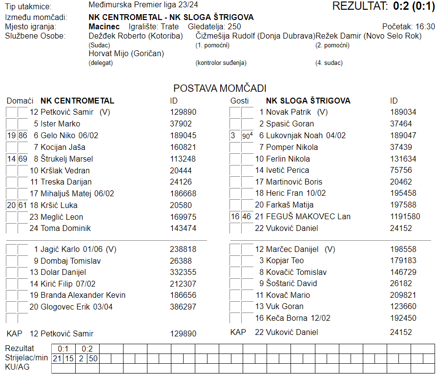 NK CENTROMETAL – NK SLOGA ŠTRIGOVA 0:2