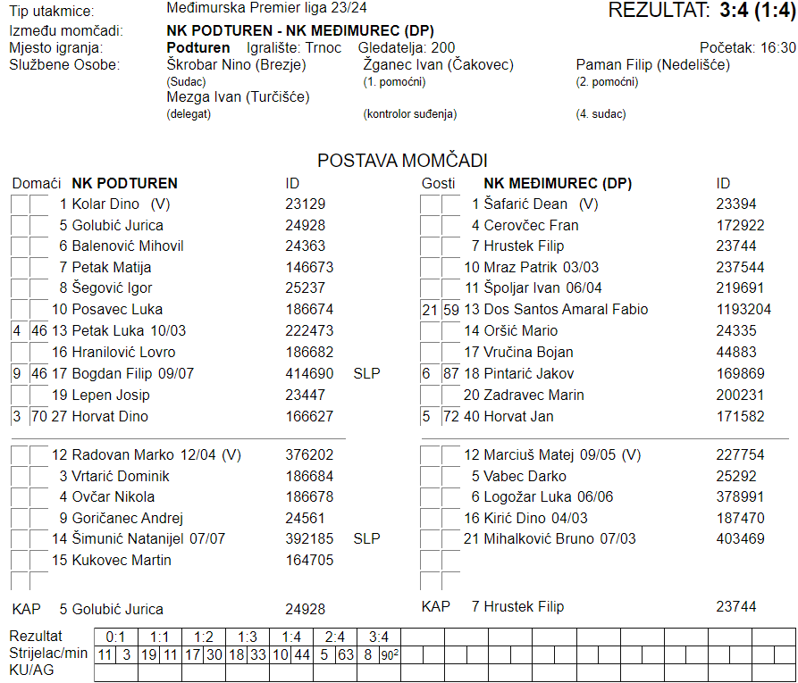 Iako se činilo da Međimurec ima sve konce u svojim rukama, nešto se ipak pitalo i domaćina. U drugom dijelu krenuli su u ofanzivu koja je zamalo urodila plodom. Prvo je Jurica Golubić smanjio na 2:4 u 63. minuti, a Igor Šegović u drugoj minuti sudačke nadoknade zabio za gol zaostatka. Unatoč trudu, Podturen nije uspio stići do željenog boda.