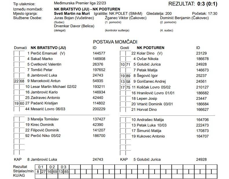 NK BRATSTVO (Ju) – NK PODTUREN 0:3