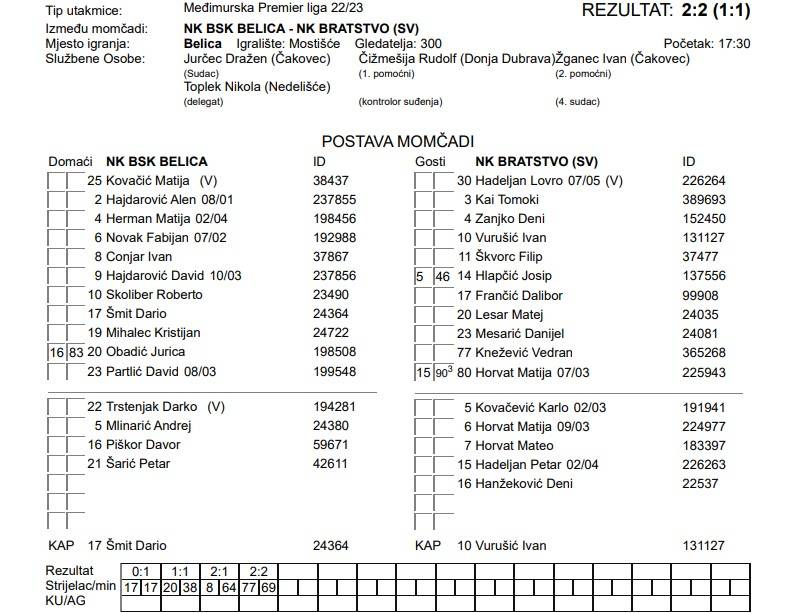 NK BSK BELICA – NK BRATSTVO (SV) 2:2