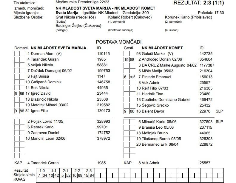 NK MLADOST SVETA MARIJA – NK MLADOST KOMET 2:3